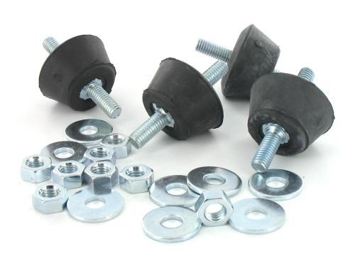 Lot de 4 amortisseurs coniques pour groupes extérieurs de climatisation. Leur grande résistance (à la pluie, au soleil...) provient des additifs incorporés dans le caoutchouc.